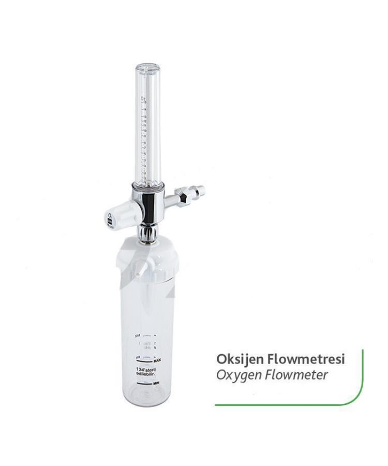 Merkezi gaz sistemine bağlı bulunan medikal oksijen prizine takılıp oksijenin burun memesi ve maske aracılığı ile nemlendiriciden geçirilerek hastaya verilmesinde kullanılır. Skala göstergesi ve nemlendirme kavanozu kırılmaya karşı dirençli polikarbon malzemeden imal edilmiştir ve 134 ˚C’de sterilize edilebilir. Flowmetreler, DIN (Alman), BS (İngiliz), NF (Fransız) standartlarında imal edilmektedir.